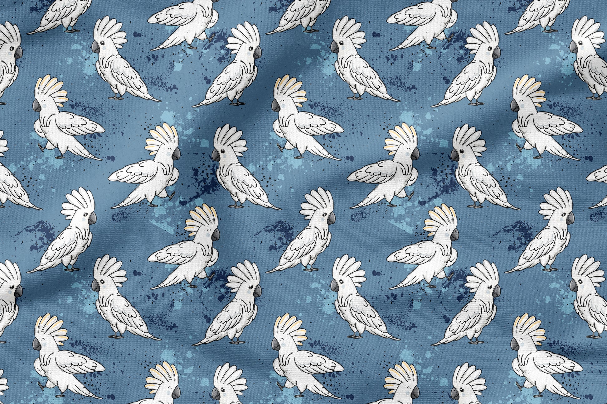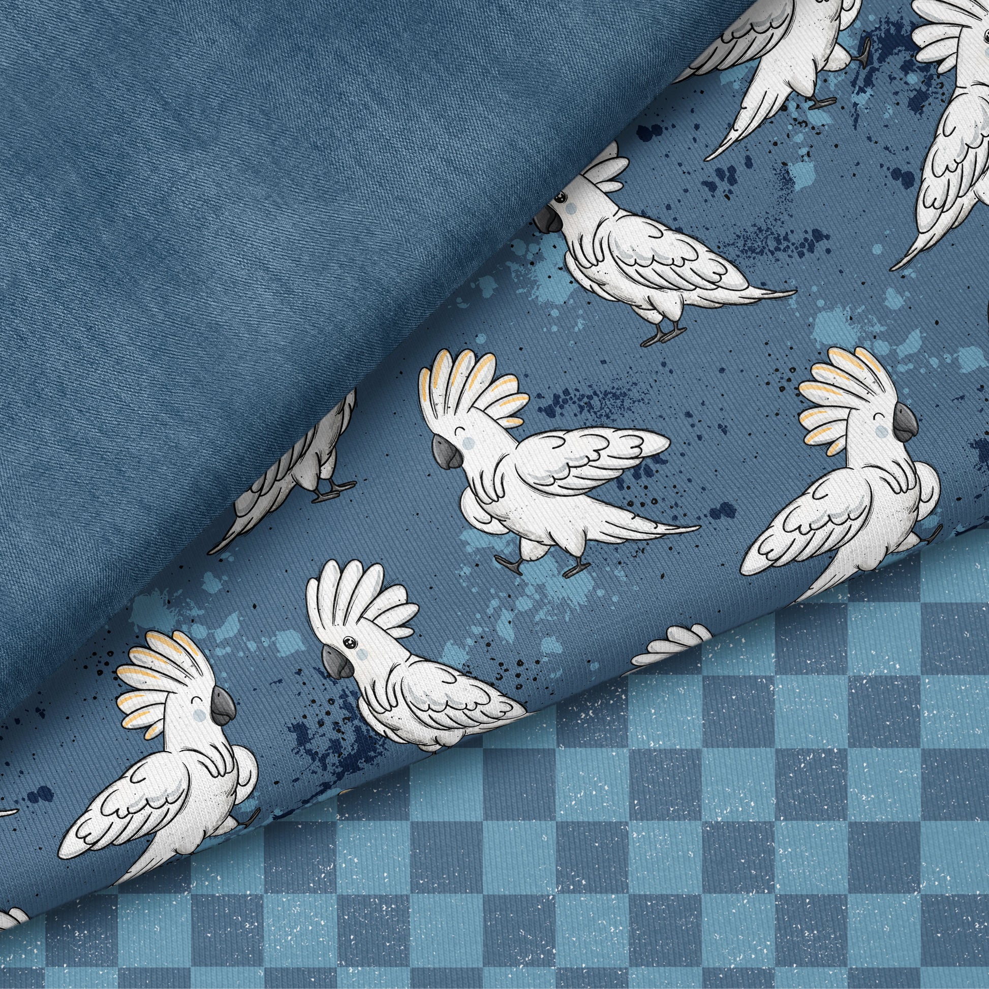 Cool Kakadu – moderner Vogelstoff in Blau | verschiedene Stoffarten