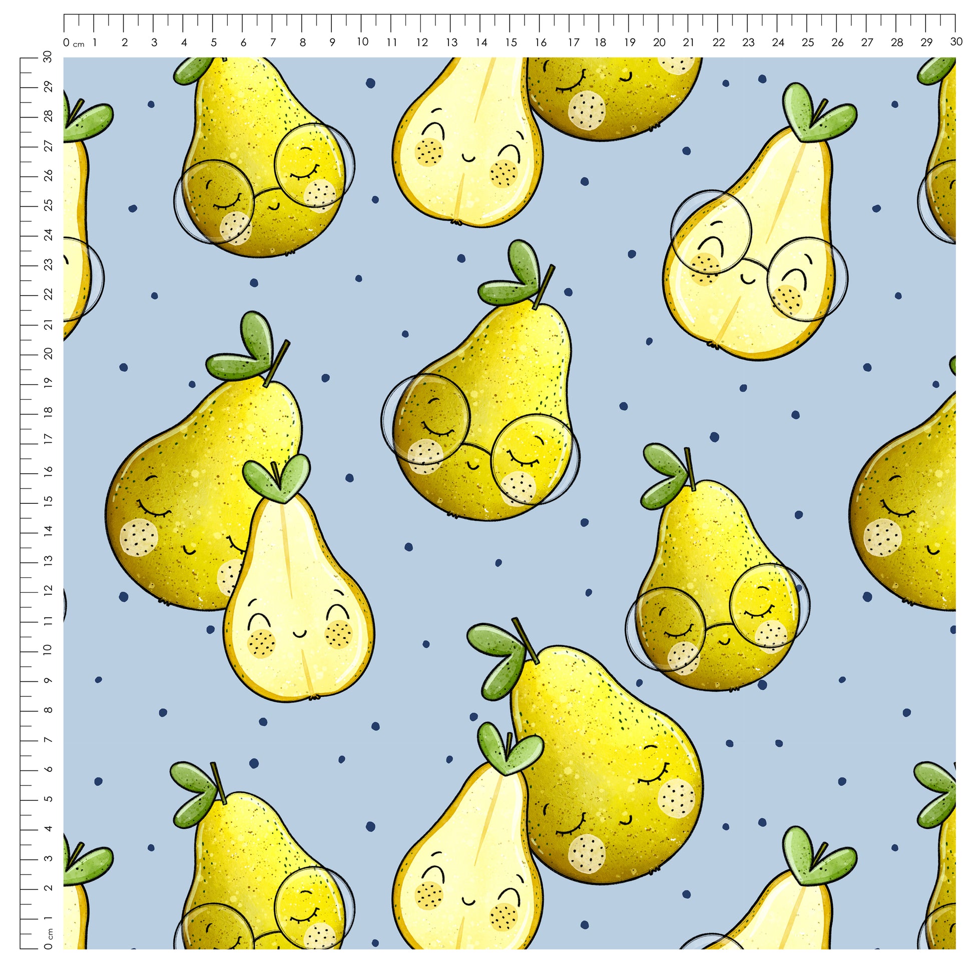 Stoffpaket Birnenliebe Blau – fruchtiger Kinderstoff | verschiedene Stoffarten