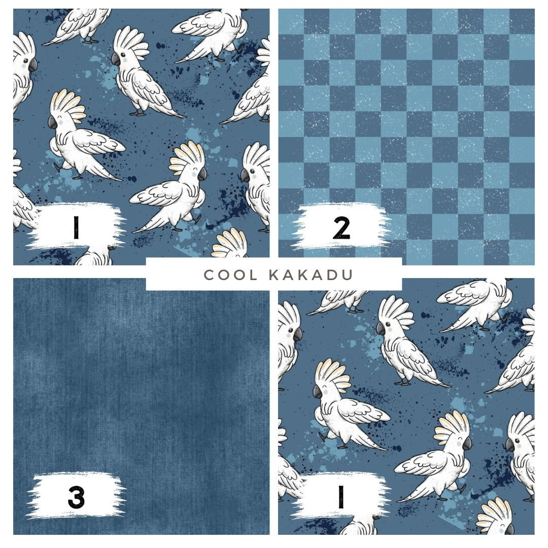 Stoffpaket Cool Kakadu – moderner Vogelstoff in Blau | verschiedene Stoffarten