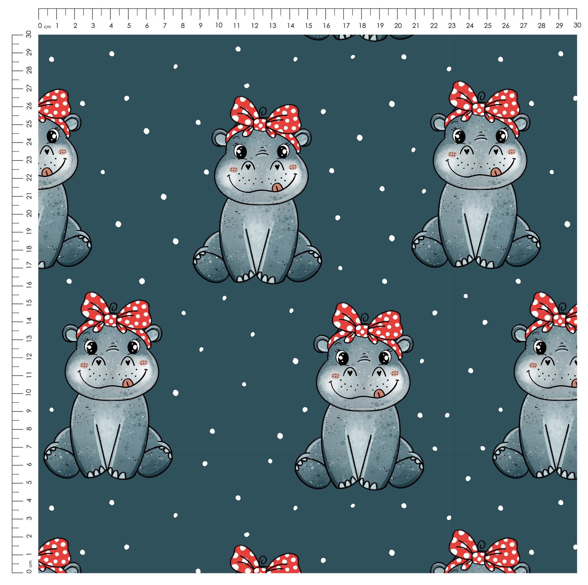 Stoffpaket Happy Hippo Grau – süßer Nilpferd Kinderstoff | verschiedene Stoffarten
