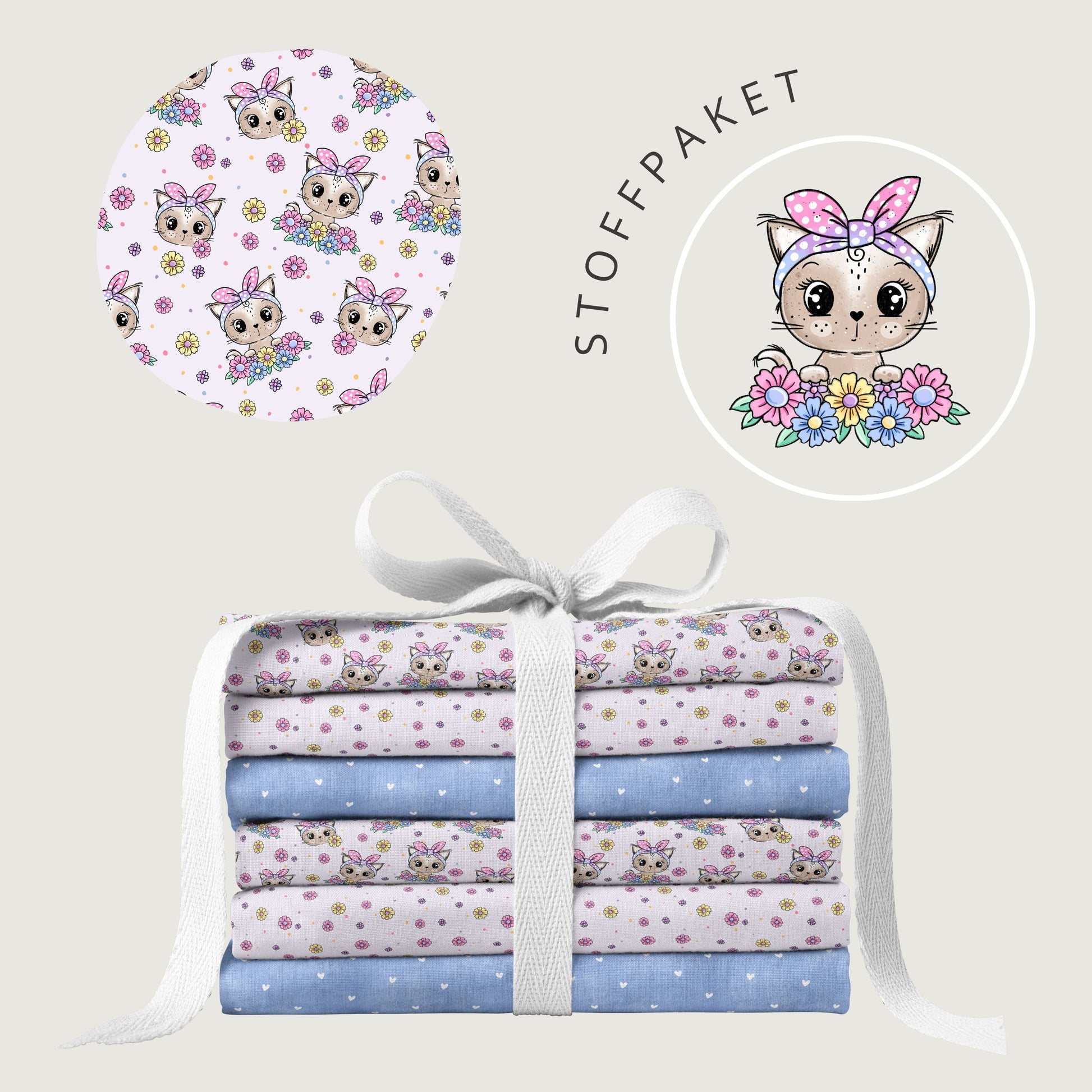 Stoffpaket Kitty Flower Flieder – Katzen & Blumen Kinderstoff | verschiedene Stoffarten