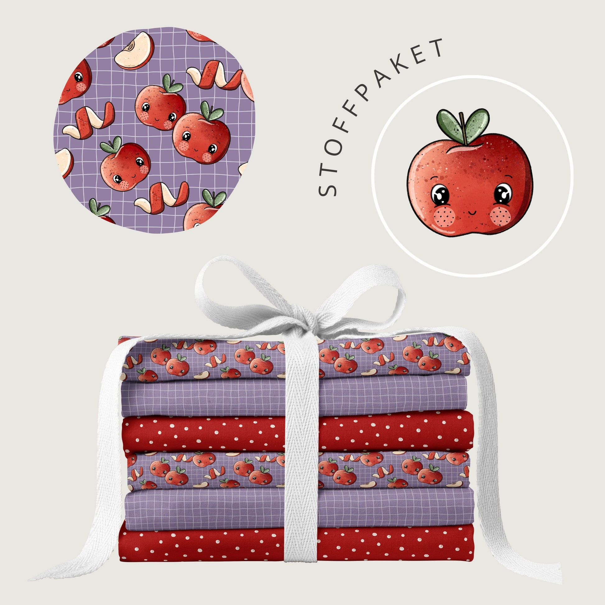 Stoffpaket Sweet Apples – Fruchtstoff in Rot & Lila | verschiedene Stoffarten