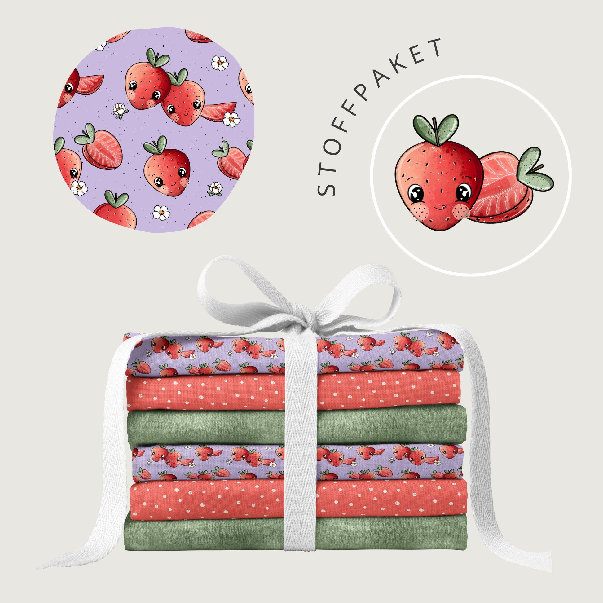 Stoffpaket Sweet Strawberry – Kinderstoff mit Erdbeeren | verschiedene Stoffarten