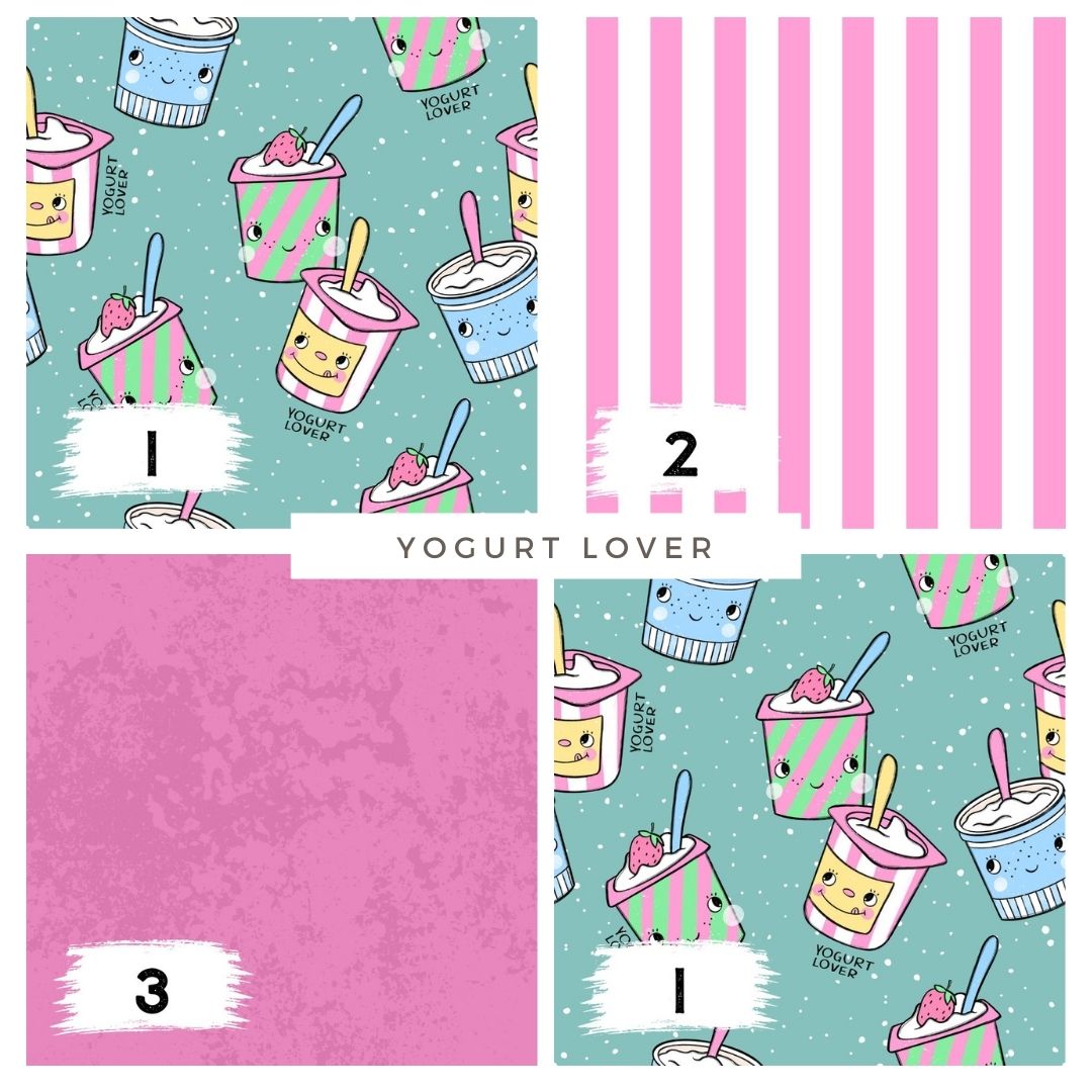 Stoffpaket Yogurt Lover Mint – Kinderstoff Food Design | verschiedene Stoffarten