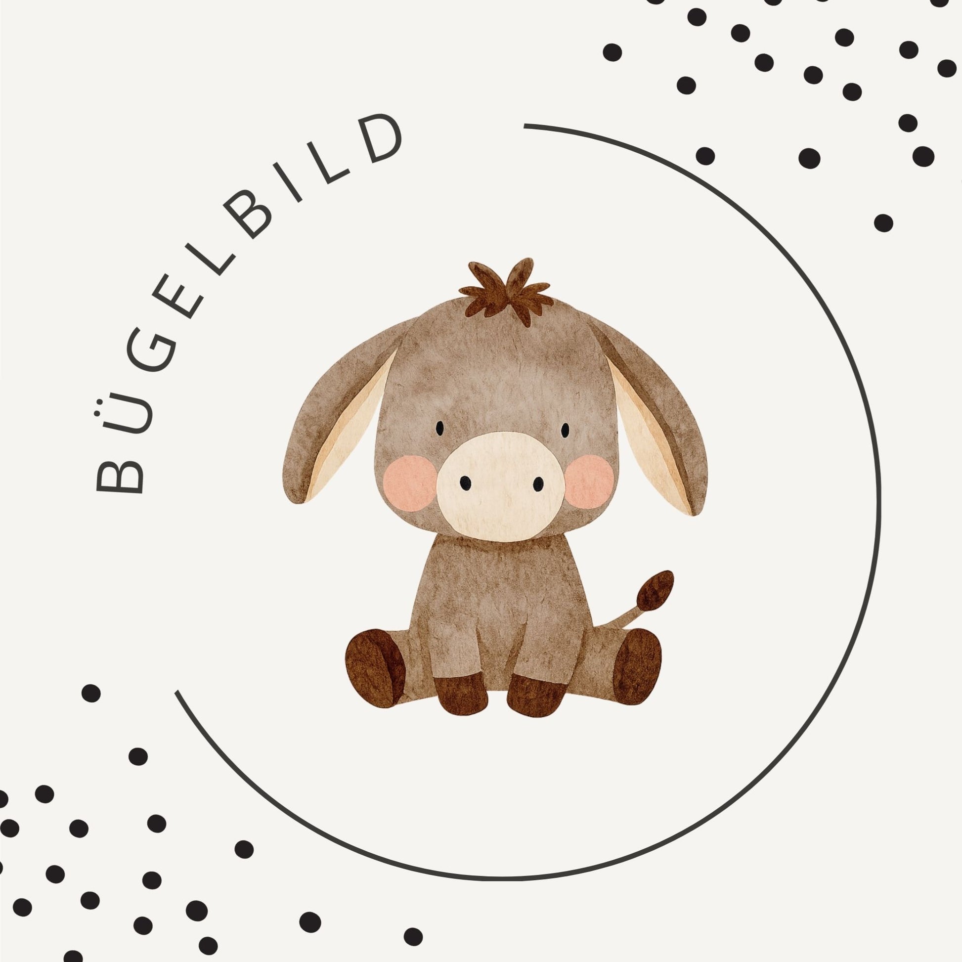 Das Bügelbild „Eselchen“ zeigt einen niedlichen kleinen Esel im ruhigen Aquarellstil mit weichen Naturtönen und zarten Rosé-Akzenten. Das minimalistische Design wirkt warm, freundlich und harmonisch – perfekt für moderne Baby- und Kinderkleidung im Scandi- & Boho-Stil.
