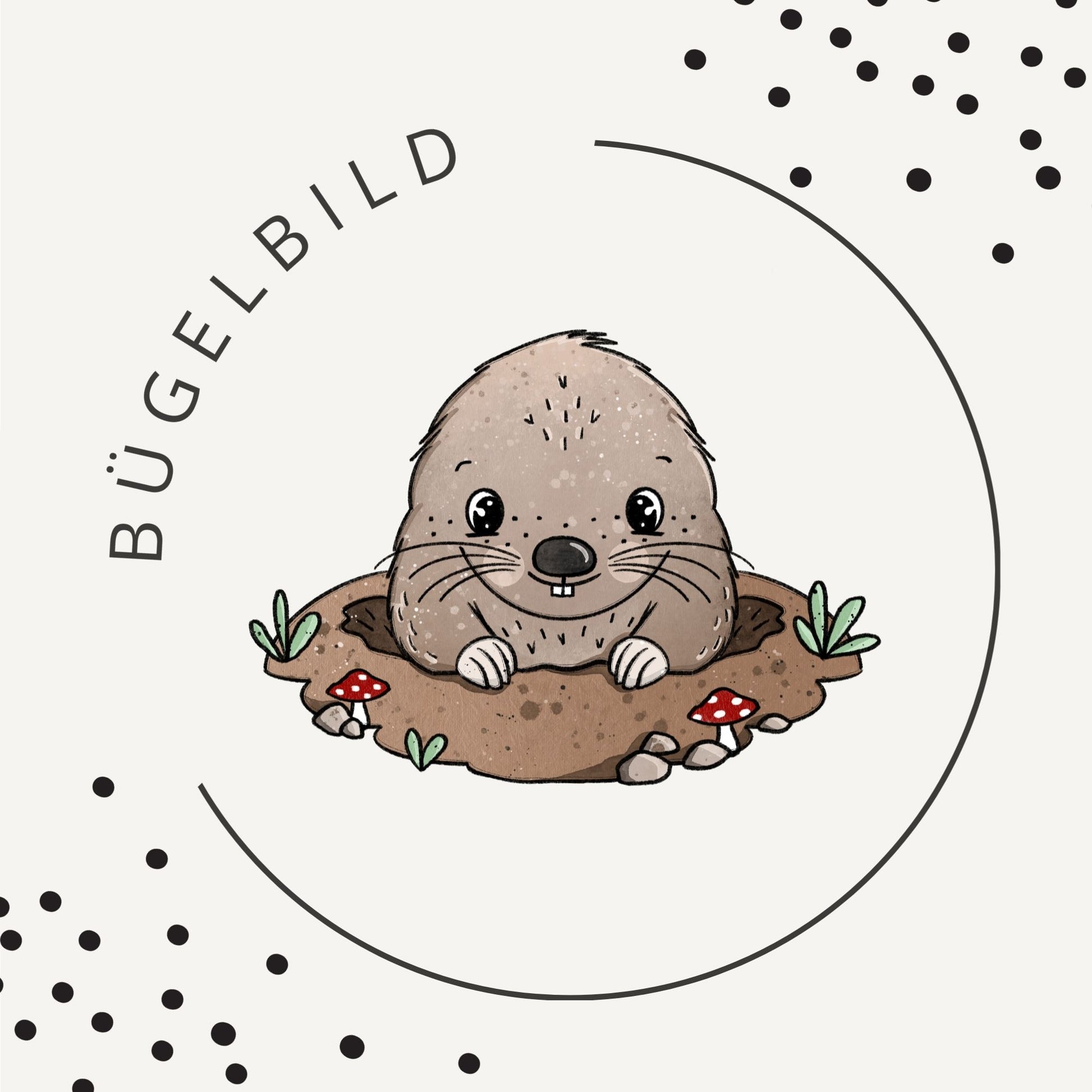 Das Bügelbild „Kleiner Maulwurf“ zeigt einen niedlichen Maulwurf, der vorsichtig aus seinem Hügel schaut – umgeben von Erde, kleinen Pflanzen und Pilzen. Das handgezeichnete Motiv im sanften Aquarellstil strahlt Ruhe, Natürlichkeit und Geborgenheit aus.