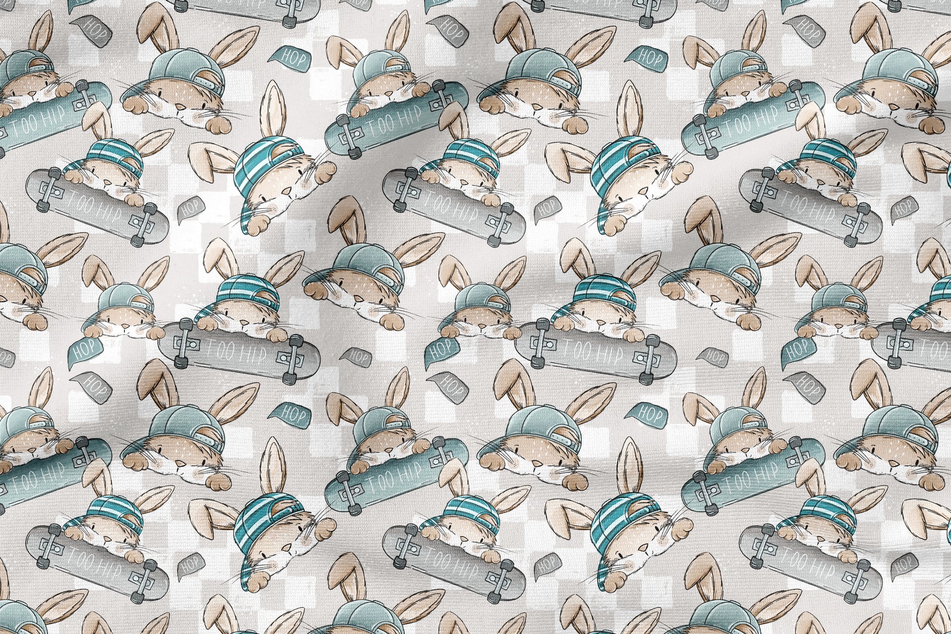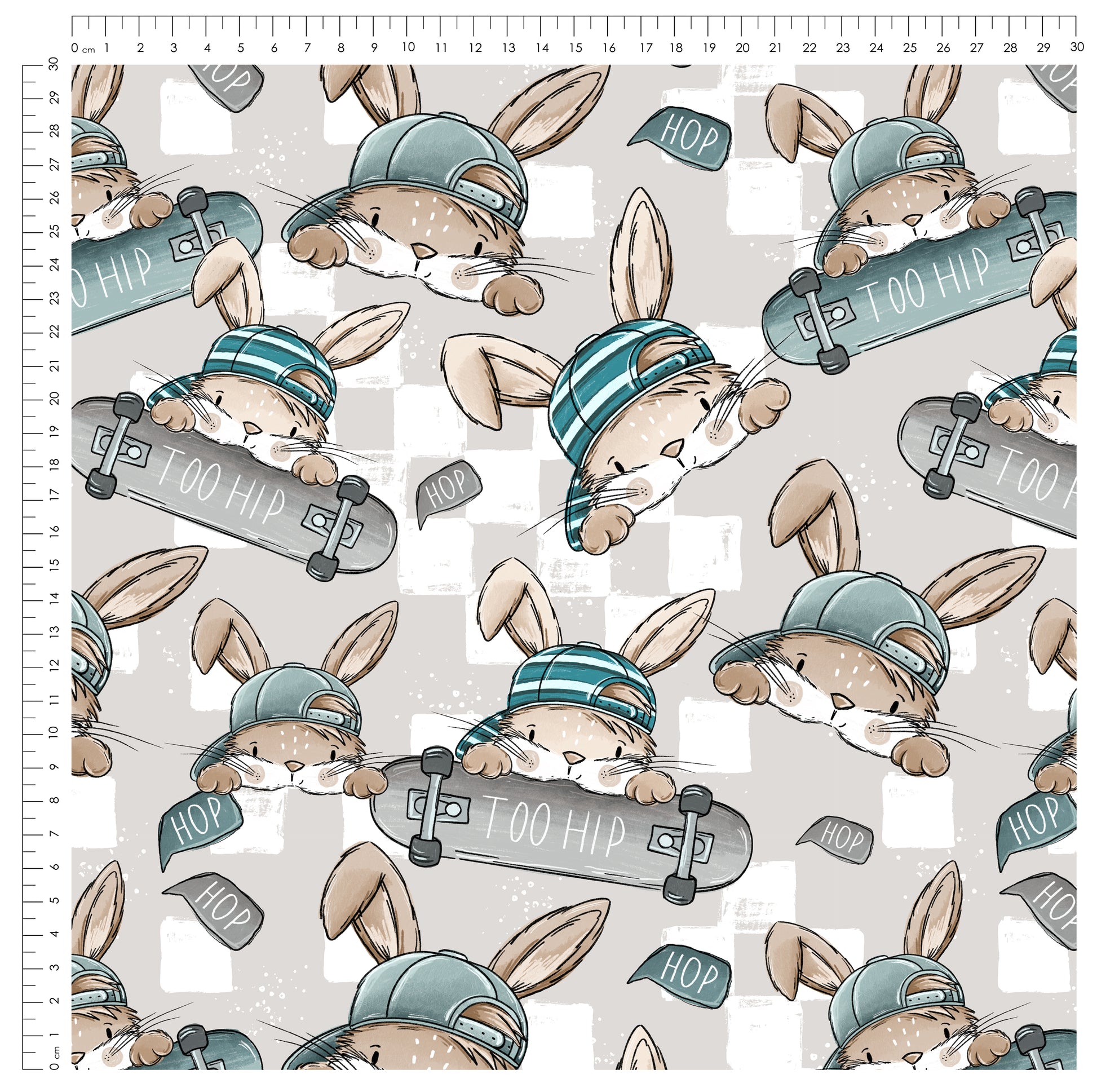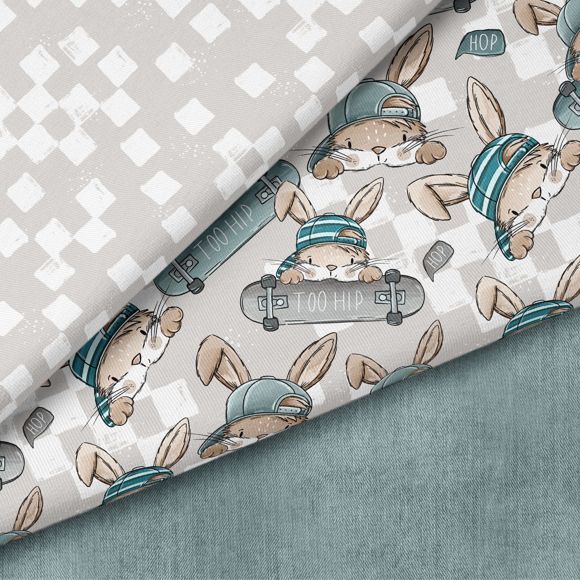 Skate Bunny Vibes Grau – Kinderstoff mit Hasen | verschiedene Stoffarten